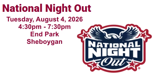 National Night Out is an annual FREE community event sponsored by Crime Stoppers and the Sheboygan Police Department. It's a night for citizens to send a powerful message about neighborhood unity, awareness, safety and police-community partnerships. We plan to let criminals know that we are united and dedicated to building a safer, more caring Sheboygan County. Visit the booths of over 50 non-profit organizations who are working to make our community better.