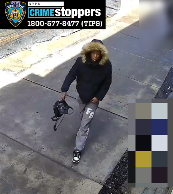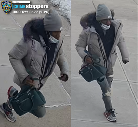 On Thursday, February 26, 2026, at approximately 1220 hours, on the northeast corner of East 179 Street and Walton Avenue, a 72-year-old female victim was approached by an unidentified individual. The unidentified individual forcibly removed the victim’s handbag from her hands and fled on foot, northbound on Walton Avenue toward East Burnside Avenue.