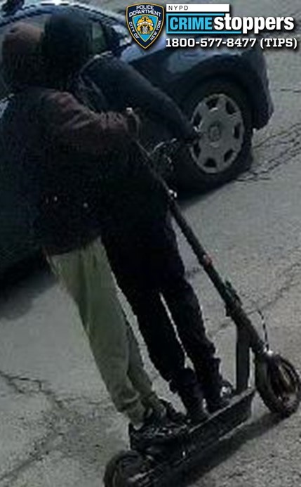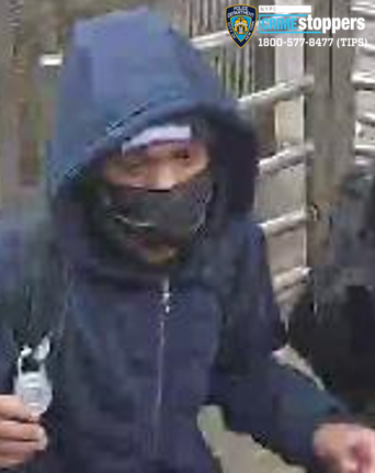 On Thursday, March 26, 2026, at approximately 1850 hours, while inside of a northbound "2" train at the Bronx Park East subway station, an 18-year-old male victim, 18-year-old male victim, and 19-year-old male victim were approached by nine unidentified individuals. The nine unidentified individuals proceeded to punch and kick the victims on their faces and bodies. Unidentified individual 4 and unidentified individual 9 did strike the victims on their bodies with a scooter multiple times. Unidentified individual 4 then displayed a knife and slashed an 18-year-old male victim on his head. The nine unidentified individuals then forcibly removed two of the victims' cell phones, a backpack, and headphones. They fled the station on foot to parts unknown. The three male victims sustained minor injuries as a result of the incident.
