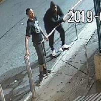 Robbery On Monday, August 5, 2019 at approximately 10:30 P.M., at 60 Pitt Street in the confines of the 7th Precinct in Manhattan, the two male perpetrators pictured above punched a male in his head numerous times causing him to fall to the ground and took the male's bag of food from his hands.
