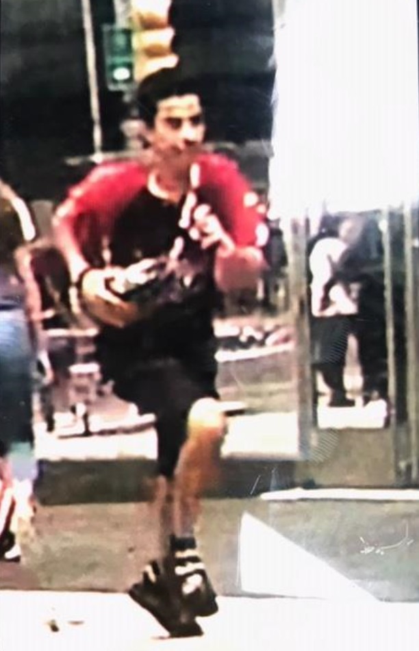 On Monday, July 8, 2019 at approximately 4:00 p.m., inside the Hershey Candy Store located at 701 7 Avenue in the confines of the 18 Precinct in Manhattan, the perpetrator (pictured above) entered the employee's break room and took a 45 year old victim's backpack.